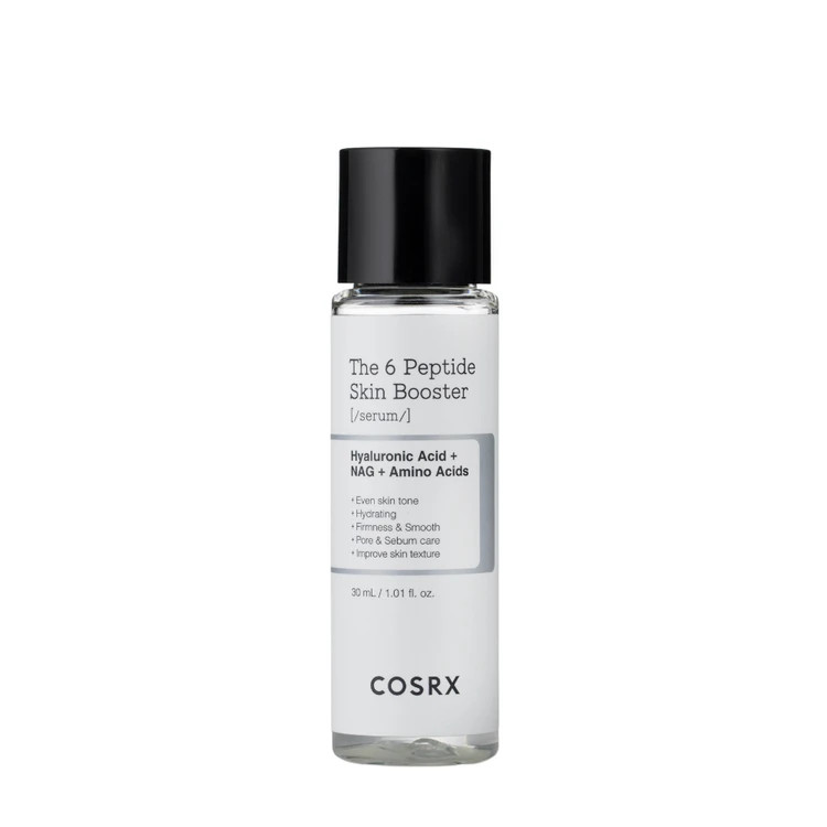 یکی از پرفروشترین محصولات برند COSRX با تأثیر فوری و قوی در کاهش چین و چروکها، آبرسانی عمیق پوست و روشن کنندگی، سرم پپتاید کوزارکس است. این سرم حاوی 6 پپتید فعال است که خاصیت تقویت کننده کلاژن، بازسازی بافت پوست، روشن کننده، آرامشبخش، سفت کننده و مراقبت از چربی اضافه پوست دارد. بوستر سرم تقویت کننده ۶ پپتاید کوزارکس ساخت کره است. ترکیبات مغذی و فعال این سرم با انواع پوست بهویژه پوست حساس سازگار است. برای خرید سرم پپتاید کوزارکس هلو شاپ در خدمت شماست.